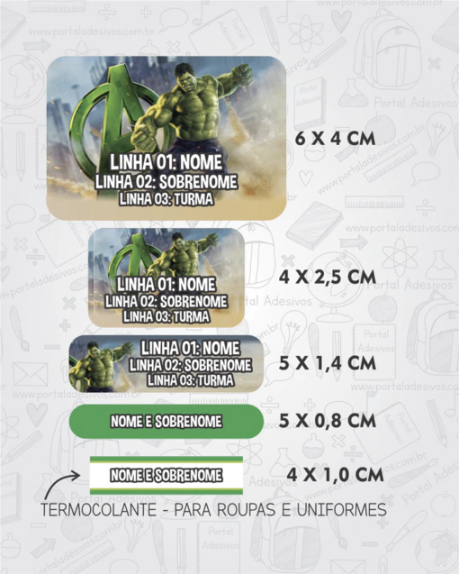Kit com 60 Etiquetas Escolares Kit com 60 Etiquetas Escolares + 15 Termocolantes para Roupas Kit com 120 Etiquetas Escolares Kit com 120 Etiquetas Escolares + 15 Termocolantes para Roupas Kit com 240 Etiquetas Escolares Kit com 240 Etiquetas Escolares + 15 Termocolantes para Roupas